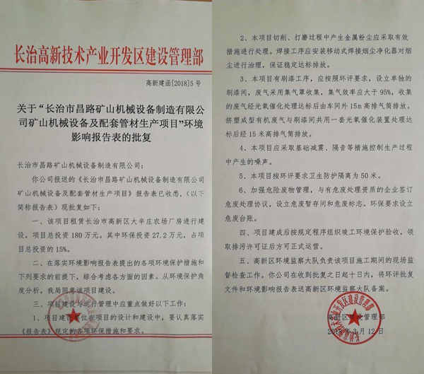 榮獲長(zhǎng)治高新區(qū)環(huán)境影響報(bào)告表的批復(fù)